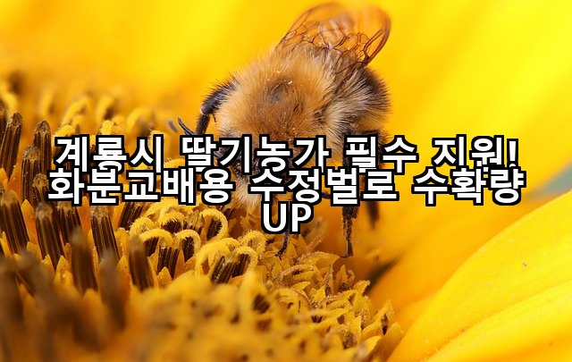계룡시 딸기 재배농가를 위한 희소식: 화분교배용 수정벌 지원 따스한 햇살 아래 탐스러운 딸기가 자라나는 계룡시의 비닐하우스마다 활기찬 소식이 전해지고 있습니다. 계룡시는 지역 경제의 중요한 축인 딸기 재배농가의 소득 증대와 고품질 딸기 생산을 위해 혁신적인 지원 정책을 펼치고 있는데요. 바로 ‘딸기화분 교배용 수정벌 지원’ 사업이 그 주인공입니다. 이 지원은 단순한 현물 지원을 넘어, 농가 생산성을 극대화하고 … 더 읽기